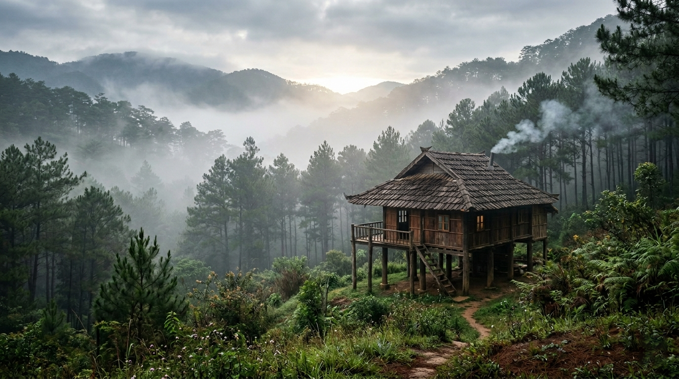 MA.DE được sinh ra từ một chuyến đi vào buổi sáng sương giăng ở Măng Đen năm 2026. Người sáng lập — một kiến trúc sư trẻ mang trong mình ký ức về những mái nhà rông, những thớ gỗ thông ướt mưa — đã quyết định không rời đi.